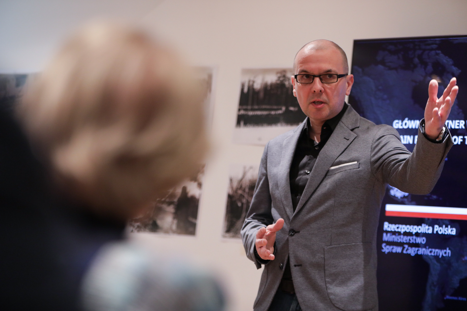 Wystawa „Szlaki Nadziei. Odyseja Wolności” w Londynie – 9 lutego 2024 r. Na zdj. Konsul Generalny RP Mateusz Stąsiek. Fot. Mikołaj Bujak (IPN) -