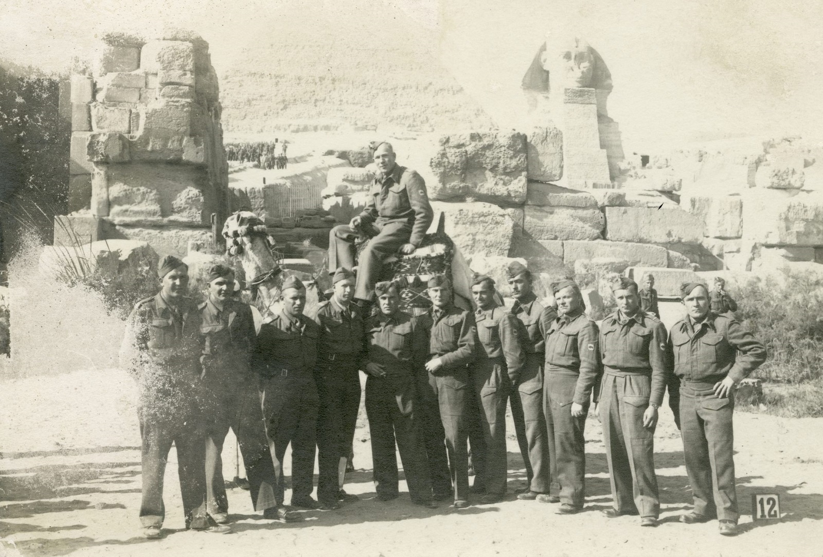 Grupa żołnierzy 2. Korpusu Polskiego przy sfinksie, Giza, 1943 – 1946 (fot. AIPN)
