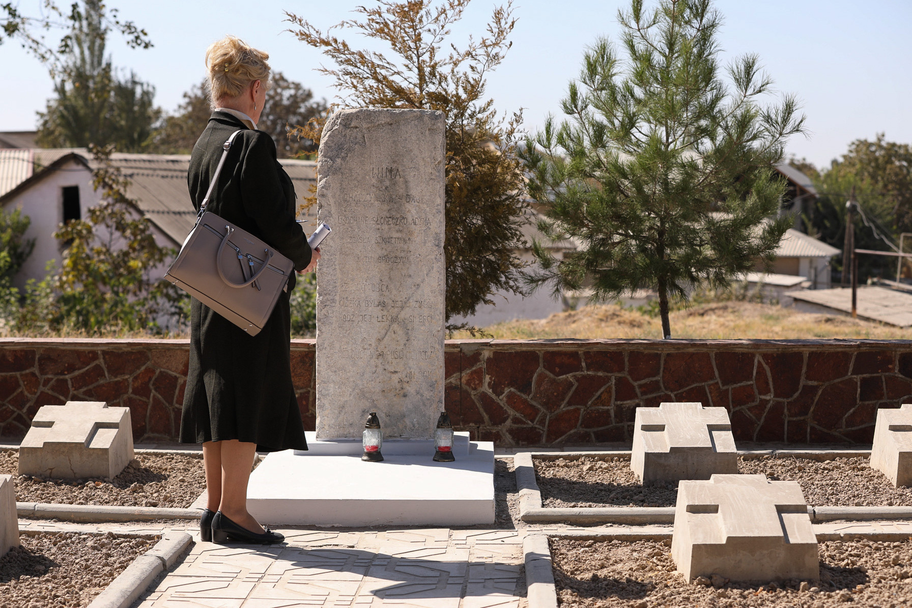 The main trace of Polish activity in the town was the cemetery, where most of the 256 deceased soldiers and the accompanying civilians, who gathered around the army being created, were buried. Deaths occurred as a result of illnesses and exhaustion that accompanied them throughout their period of Soviet “hospitality”. The exact number of those buried in the cemetery is unknown. After the Poles left the town, the original cemetery was quickly destroyed by the communist authorities, who built a school on the site. The current commemoration is symbolic and located close to the actual location of the graves.