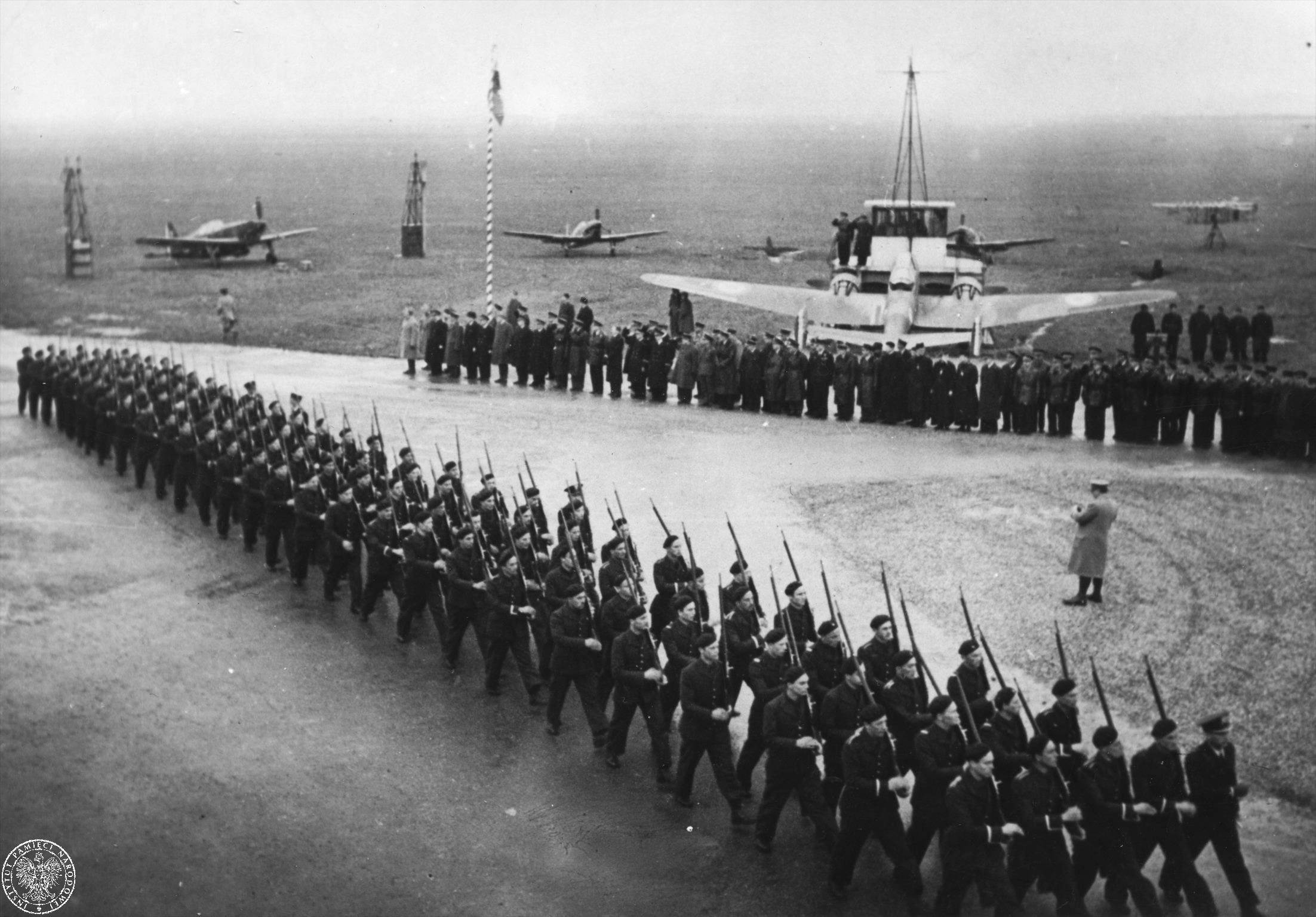 On 27 March 1940, a ceremony was held at the airport to induct eighteen Polish pilots into service in the Armée de l'air after being assigned to French fighter units for combat training. The ceremony was attended by General Sikorski, while France was represented by Gen. Joseph Vuillemin (Commander of the French Air Force), General Louis Picard (Chief of the French Air Force Staff) and General Victor Denain (Head of the French Military Mission to Poland).